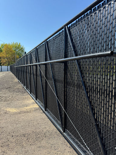 We can add privacy slats for your commercial chain link fence. They come in various coverages, usually from 75% to 95%, and a variety of colours.